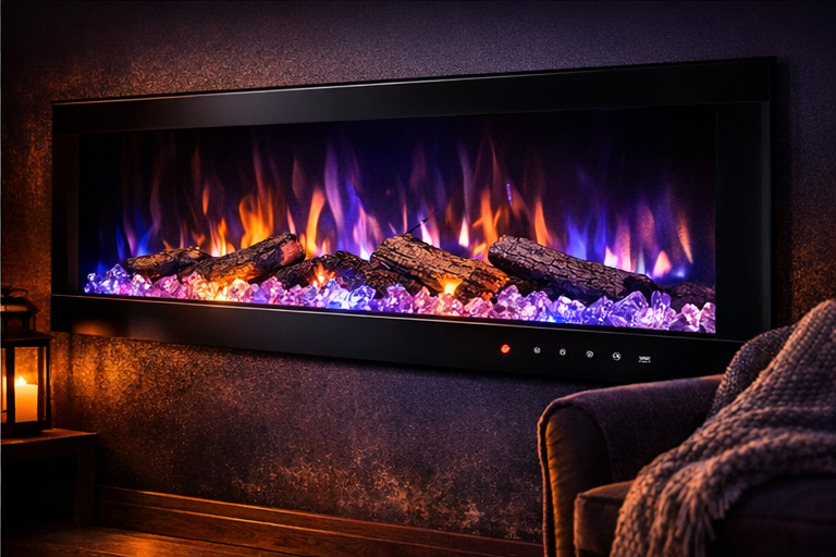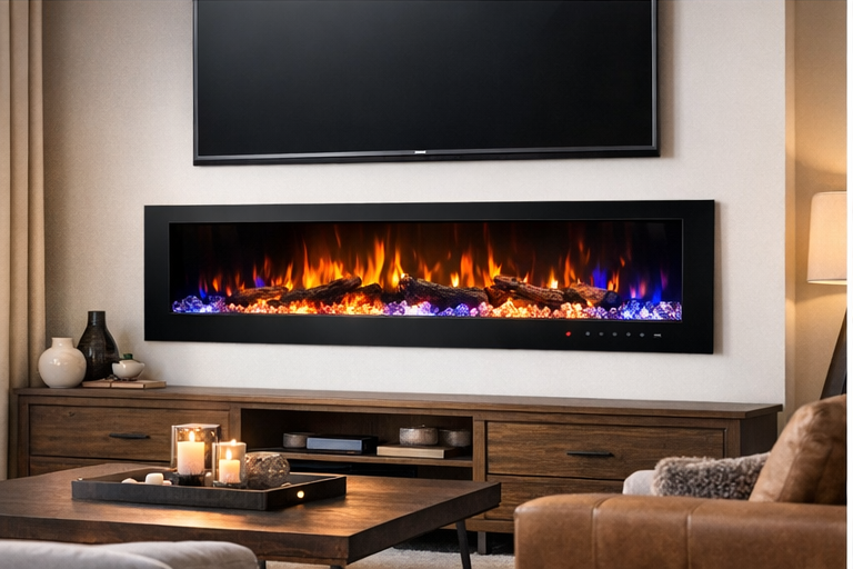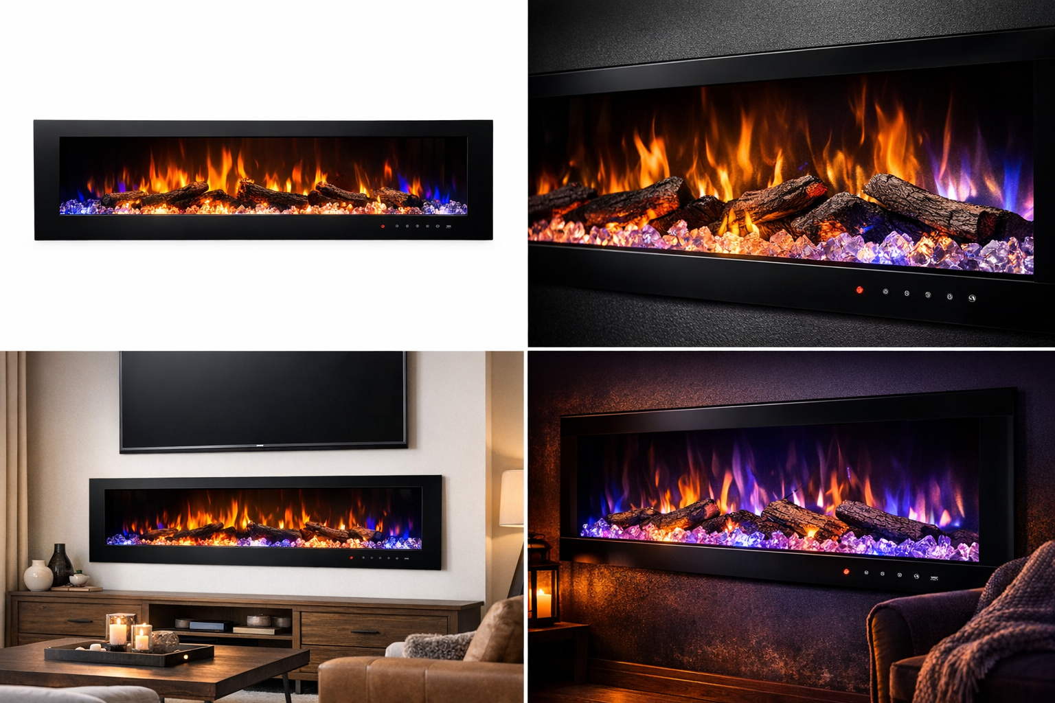 Bring warmth and modern elegance into your living space with this 42-inch wall-mounted electric fireplace. Designed with an ultra-slim profile, it fits seamlessly into any contemporary interior, whether mounted on the wall or recessed for a built-in look.